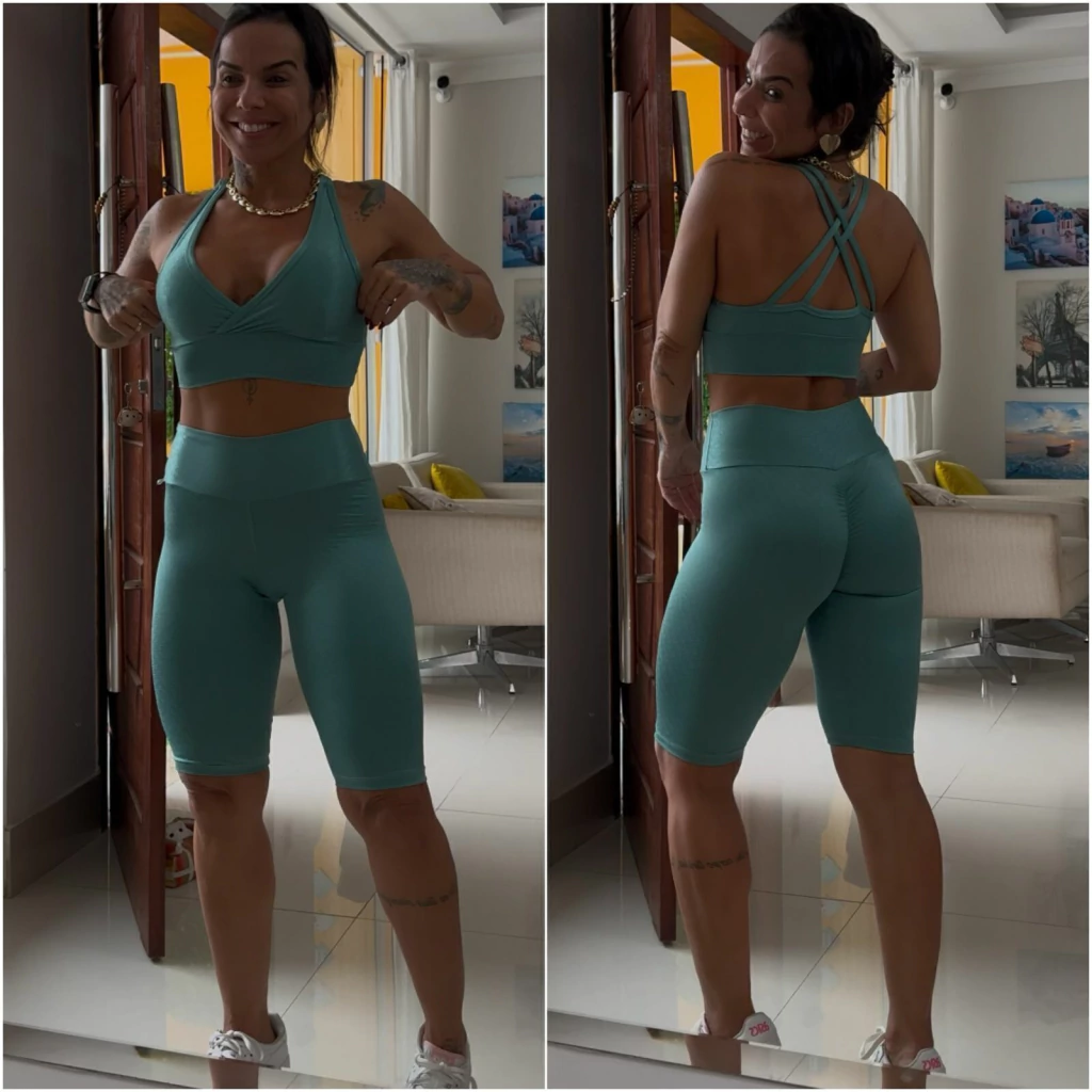 Conj de short em Jacquar de poliamida com elastano