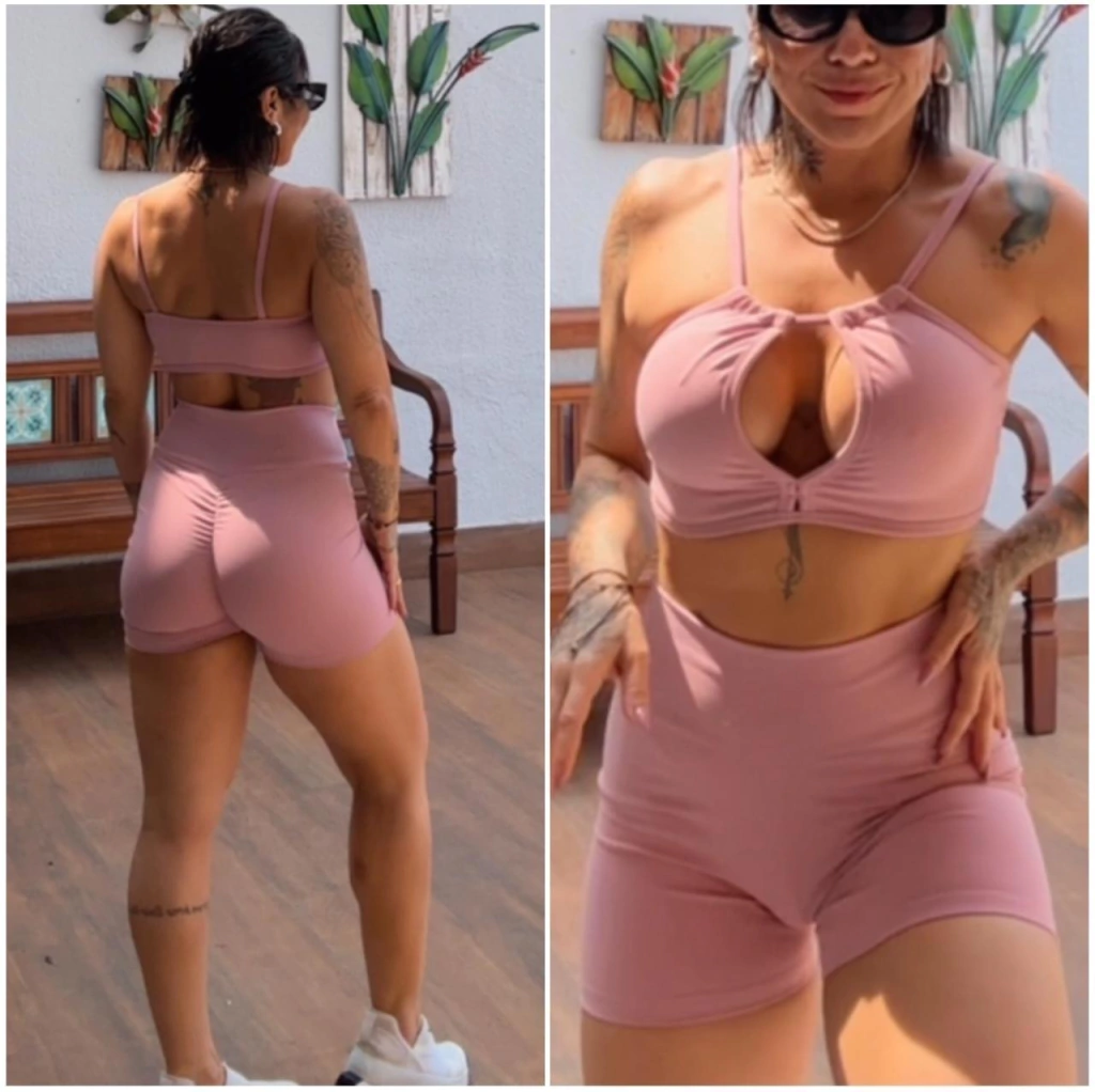 Conj Short Duplo Tela Curtinho - Preto tela branca